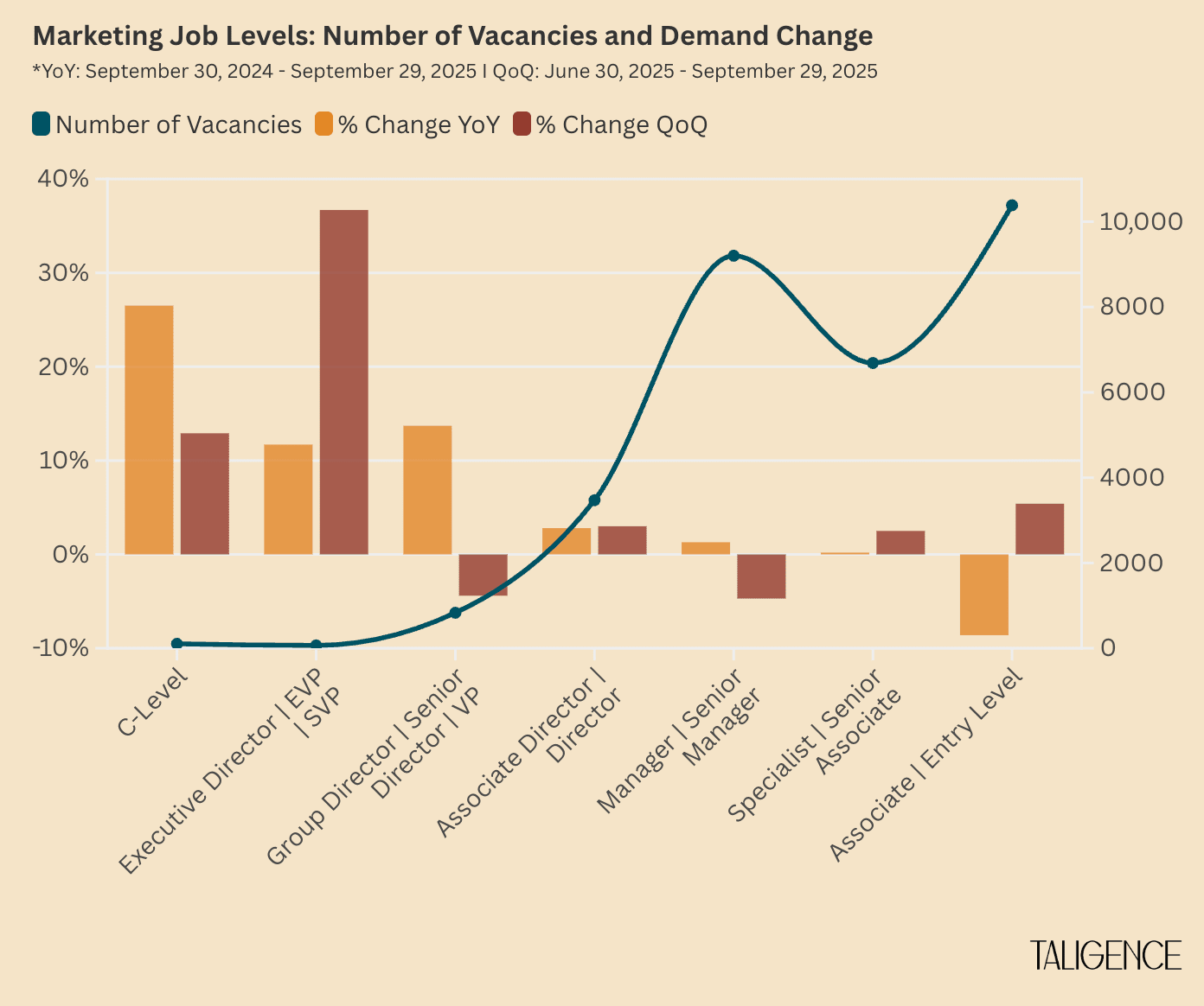 C-level and VP roles are booming. Up nearly 30% YoY.